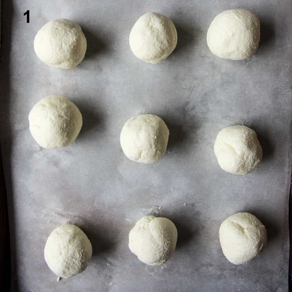 - Place the balls, spaced apart, on the prepared baking tray.