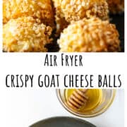 Fried goat cheese balls are a 30-minute air fryer appetizer that comes together with just 5 simple ingredients! Paired with a drizzle of honey and a sprinkle of fresh thyme, each bite is crispy, creamy, sweet, and savory. Serve them at a holiday party, as part of a charcuterie board, or as a topping on salads.