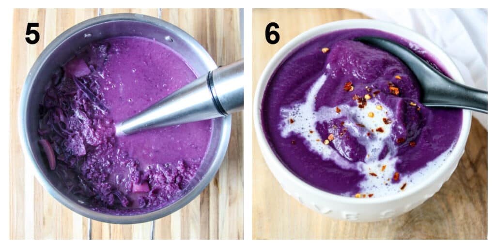 This purple soup is so nutritious because the more colorful the produce is, the more nutrient-dense it usually is. (Learn more in this article by Harvard Health). The gorgeous, vibrant colour of purple (or red) cabbage indicates the abundance of antioxidants, flavonoids, and vitamins A and C in the crunchy cruciferous cabbage. Bonus: purple cabbage has twice the amount of vitamin C as green cabbage.
