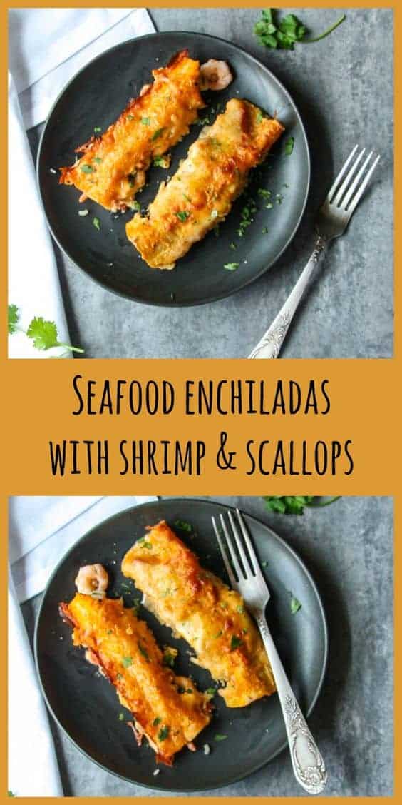 I have always been a seafood lover. I have had shrimp tacos but never thought to ever make enchaldas! absolutely stoaked I found this recipe and can't wait to try it. pulling out some scallops now and instead of salad shrimp, I am going to dice up some prawns.