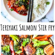 Just like my steak & asparagus stir fry, this healthy mix of crisp vegetables and flaky chunks of salmon in a flavorful teriyaki sauce is a quick and easy weeknight meal.